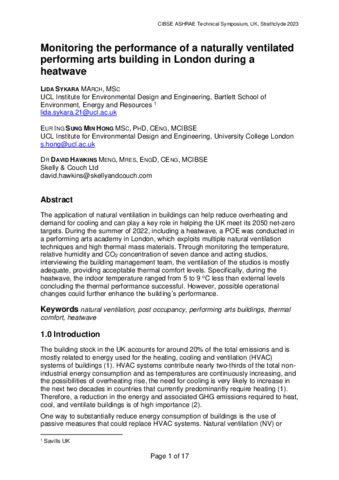 Title: | Monitoring the performance of a naturally ventilated performing arts building in London during a heatwave |