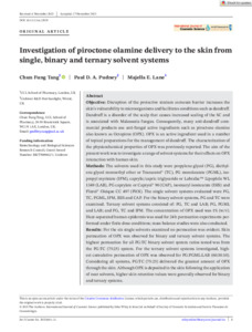 Title: | Investigation of piroctone olamine delivery to the skin from single, binary and ternary solvent systems |