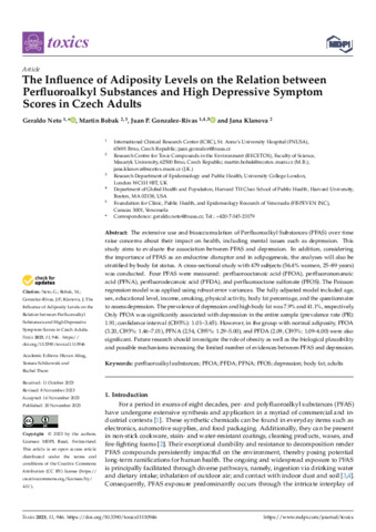 The Influence of Adiposity Levels on the Relation between Perfluoroalkyl Substances and High Depressive Symptom Scores in Czech Adults.