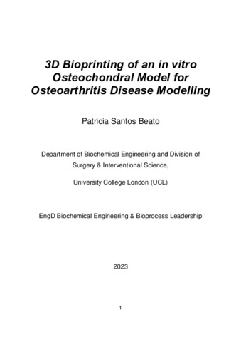 Title: | 3D Bioprinting of an in vitro Osteochondral Model for Osteoarthritis Disease Modelling |
