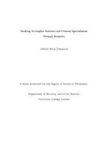 Title: | Studying Accomplice Selection and Criminal Specialisation Through Networks |