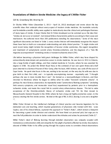 | Title: | Foundations of modern stroke medicine: The legacy of C Miller Fisher |