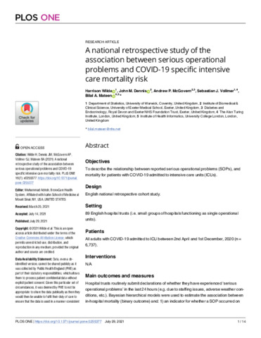 | Title: | A national retrospective study of the association between serious operational problems and COVID-19 specific intensive care mortality risk |