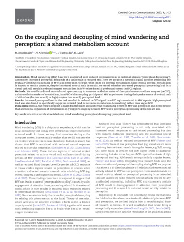 Title: | On the coupling and decoupling of mind wandering and perception: a shared metabolism account |
