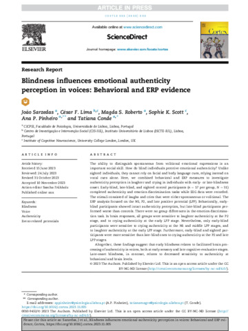 Blindness influences emotional authenticity perception in voices: Behavioral and ERP evidence.