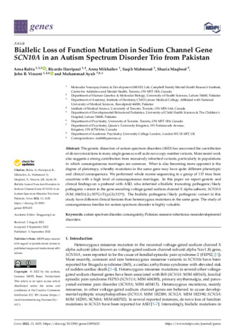 Title: | Biallelic Loss of Function Mutation in Sodium Channel Gene SCN10A in an Autism Spectrum Disorder Trio from Pakistan |