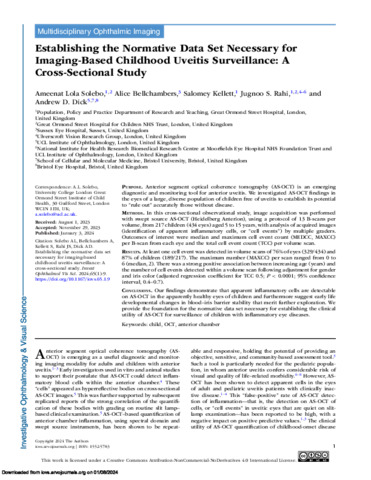 Establishing the Normative Data Set Necessary for Imaging-Based Childhood Uveitis Surveillance: A Cross-Sectional Study.