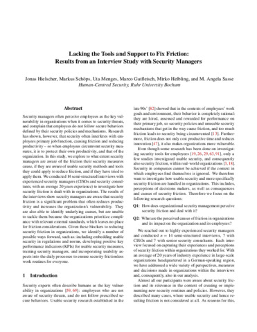 Title: | Lacking the Tools and Support to Fix Friction: Results from an Interview Study with Security Managers |