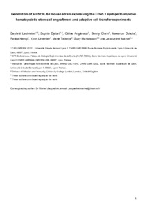 Title: | Generation of a C57BL/6J mouse strain expressing the CD45.1 epitope to improve hematopoietic stem cell engraftment and adoptive cell transfer experiments |