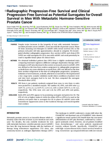 Title: | Radiographic Progression-Free Survival and Clinical Progression-Free Survival as Potential Surrogates for Overall Survival in Men With Metastatic Hormone-Sensitive Prostate Cancer |