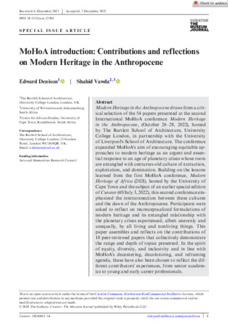 | Title: | MoHoA introduction: Contributions and reflections on Modern Heritage in the Anthropocene |