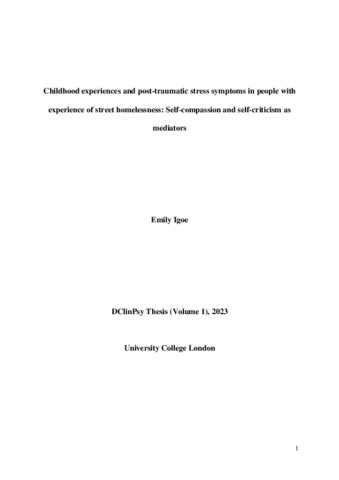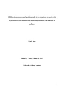 | Title: | Childhood experiences and post-traumatic stress symptoms in people with experience of street homelessness: Self-compassion and self-criticism as mediators |