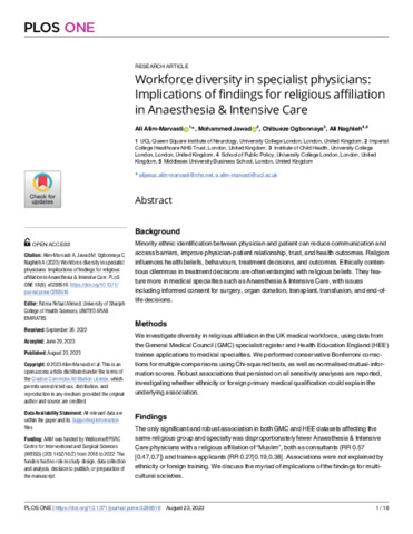 Title: | Workforce diversity in specialist physicians: Implications of findings for religious affiliation in Anaesthesia & Intensive Care |