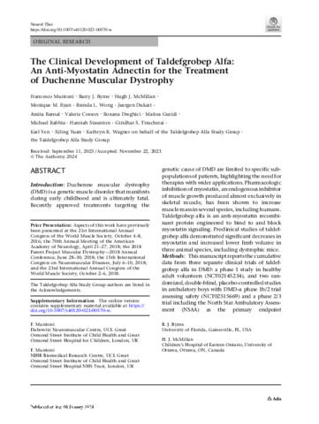 Title: | The Clinical Development of Taldefgrobep Alfa: An Anti-Myostatin Adnectin for the Treatment of Duchenne Muscular Dystrophy |