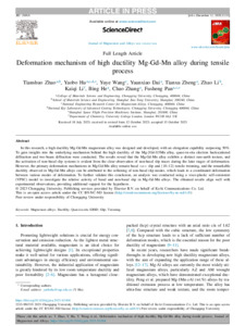 Title: | Deformation mechanism of high ductility Mg-Gd-Mn alloy during tensile process |