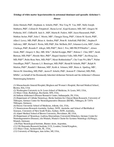 Etiology of White Matter Hyperintensities in Autosomal Dominant and Sporadic Alzheimer Disease.