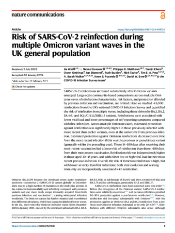 Risk of SARS-CoV-2 reinfection during multiple Omicron variant waves in the UK general population.