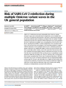 Title: | Risk of SARS-CoV-2 reinfection during multiple Omicron variant waves in the UK general population |