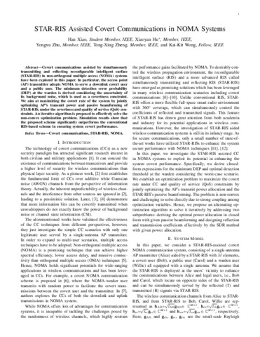 | Keywords: | Covert communications, STAR-RIS, NOMA |