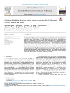 Title: | Influence of building directions on the impact properties of NiTi fabricated via laser powder bed fusion |