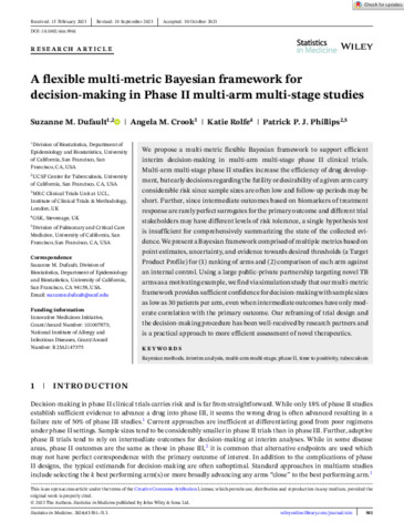 A flexible multi-metric Bayesian framework for decision-making in Phase II multi-arm multi-stage studies.