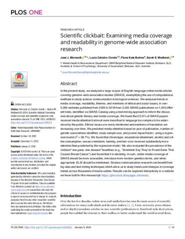 Title: | Scientific clickbait: Examining media coverage and readability in genome-wide association research |
