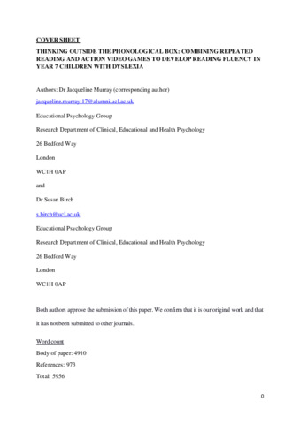 Title: | Thinking outside the phonological box: Combining repeated reading and action video games to develop reading fluency in year 7 children with dyslexia |
