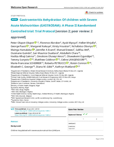 Title: | Gastroenteritis Rehydration Of children with Severe Acute Malnutrition (GASTROSAM): A Phase II Randomised Controlled trial: Trial Protocol [version 2; peer review: 2 approved] |