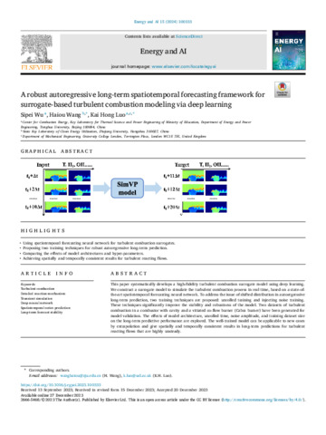Title: | A robust autoregressive long-term spatiotemporal forecasting framework for surrogate-based turbulent combustion modeling via deep learning |