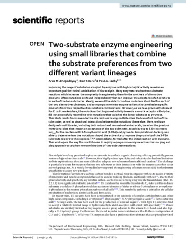 | Title: | Two-substrate enzyme engineering using small libraries that combine the substrate preferences from two different variant lineages |
