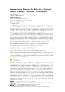 Title: | Reinforcement Planning for Effective ε-Optimal Policies in Dense Time with Discontinuities |