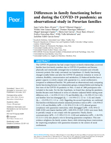 Title: | Differences in family functioning before and during the COVID-19 pandemic: an observational study in Peruvian families |