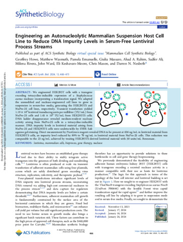 | Title: | Engineering an autonucleolytic mammalian suspension host cell line to reduce DNA impurity levels in serum-free lentiviral process streams |