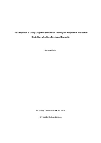| Title: | The Adaptation of Group Cognitive Stimulation Therapy for People With Intellectual Disabilities who Have Developed Dementia |