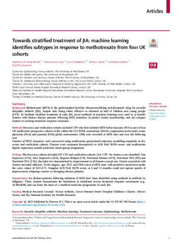Title: | Towards stratified treatment of JIA: machine learning identifies subtypes in response to methotrexate from four UK cohorts |