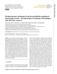 Title: | Deciphering past earthquakes from the probabilistic modeling of paleoseismic records – the Paleoseismic EArthquake CHronologies code (PEACH, version 1) |
