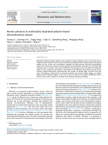 Bing_Recent advances in molecularly imprinted polymer-based electrochemical sensors_VoR.pdf - Published Version Download (12MB) | Preview |