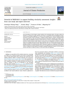 Title: | Potential of BREEAM-C to support building circularity assessment: Insights from case study and expert interview |