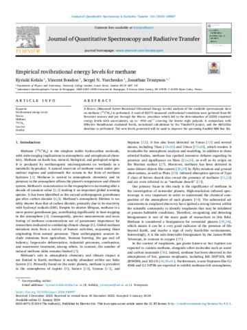 | Keywords: | Rovibrational energy levels, Marvel, Methanem, ¹²C ¹H₄, Line list, ExoMol |