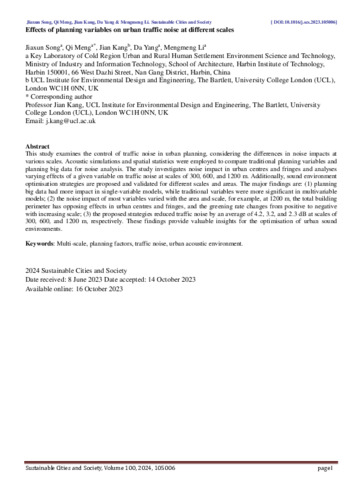 Keywords: | Traffic noise, Spatial structure, Road organization, High-density cities |