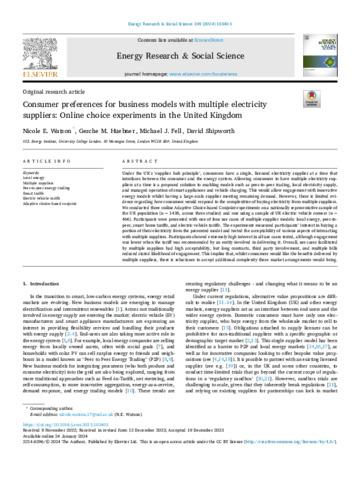 Title: | Consumer preferences for business models with multiple electricity suppliers: Online choice experiments in the United Kingdom |