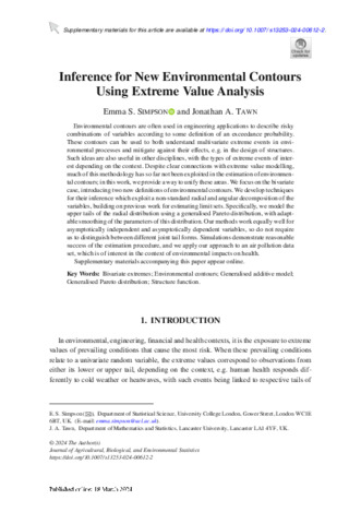 Keywords: | Bivariate extremes; Environmental contours; Generalised additive model; Generalised Pareto distribution; Structure function |