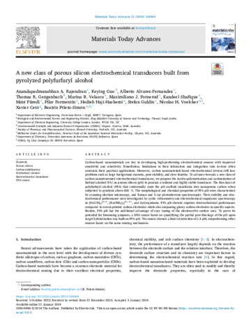 | Title: | A new class of porous silicon electrochemical transducers built from pyrolyzed polyfurfuryl alcohol |