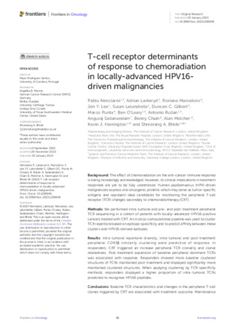 Title: | T-cell receptor determinants of response to chemoradiation in locally-advanced HPV16-driven malignancies |