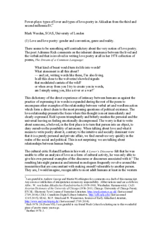 Title: | Power-Plays: Types of Lover and Types of Love in Akkadian from the Third and Second Millennia BC |