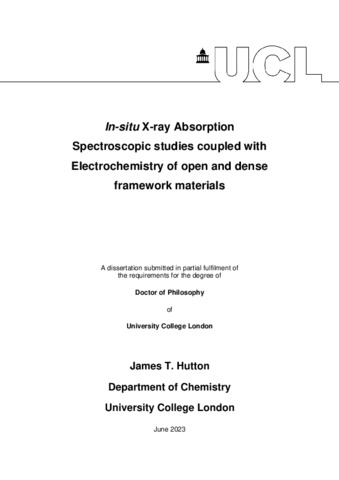 Title: | In-situ X-ray Absorption Spectroscopic studies coupled with Electrochemistry of open and dense framework materials |