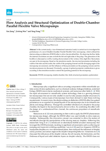 | Title: | Flow Analysis and Structural Optimization of Double-Chamber Parallel Flexible Valve Micropumps |