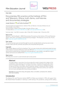 | Title: | Documentary film practice at the Institute of Film and Television, Ghana: truth claims, oral histories and documentary strategies |