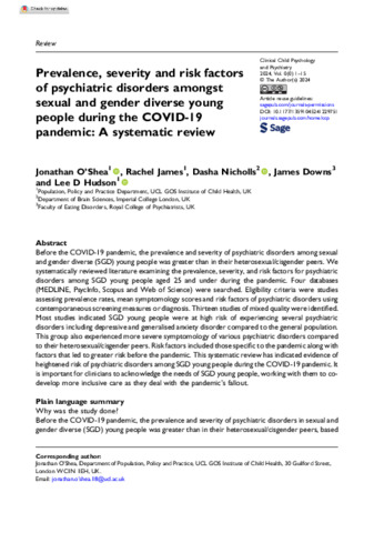 | Title: | Prevalence, severity and risk factors of psychiatric disorders amongst sexual and gender diverse young people during the COVID-19 pandemic: A systematic review |