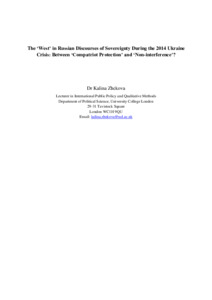 Title: | The West in Russian Discourses of Sovereignty During the 2014 Ukraine Crisis: Between ‘Compatriot Protection’ and ‘Non-Interference’ |